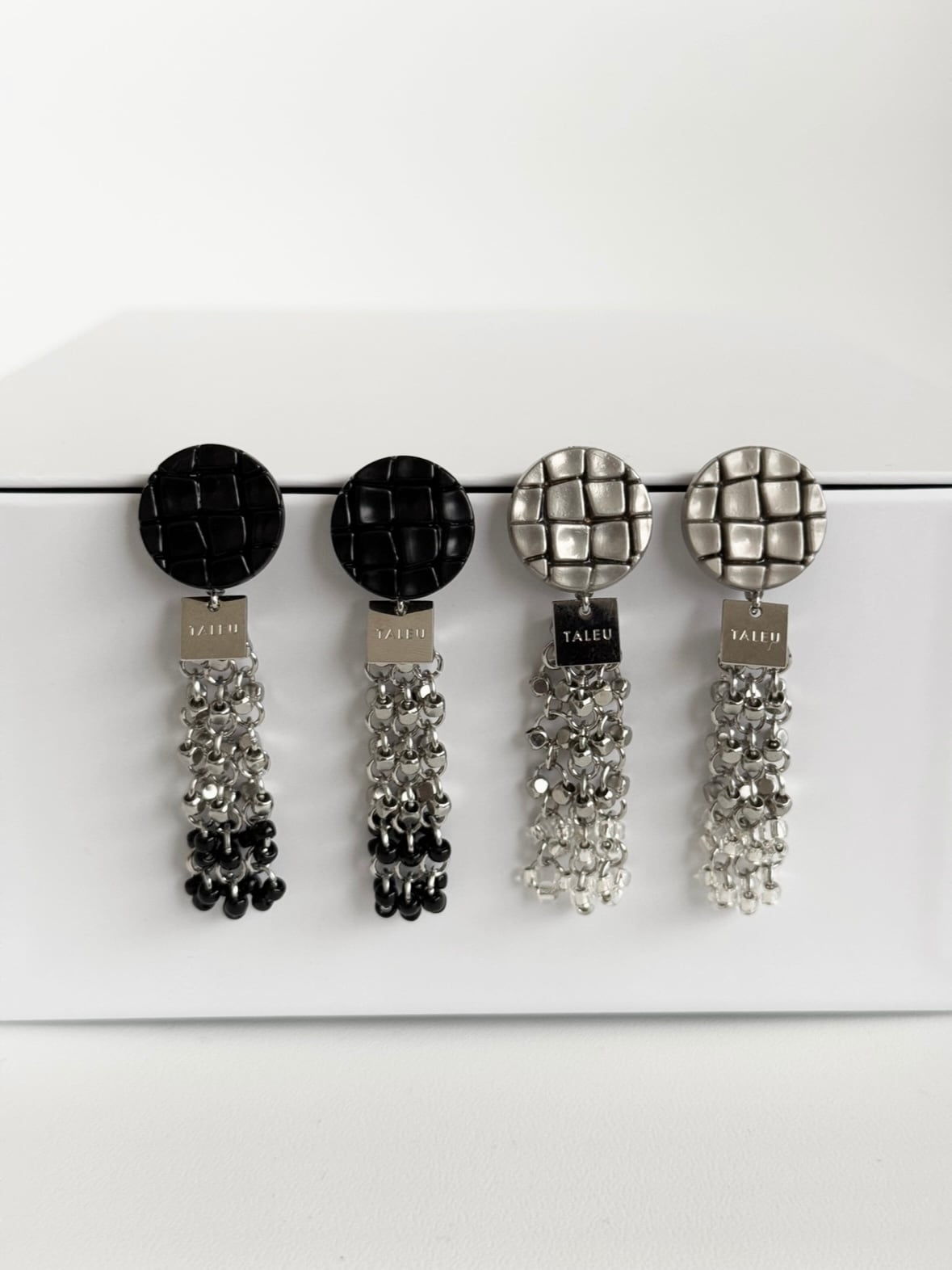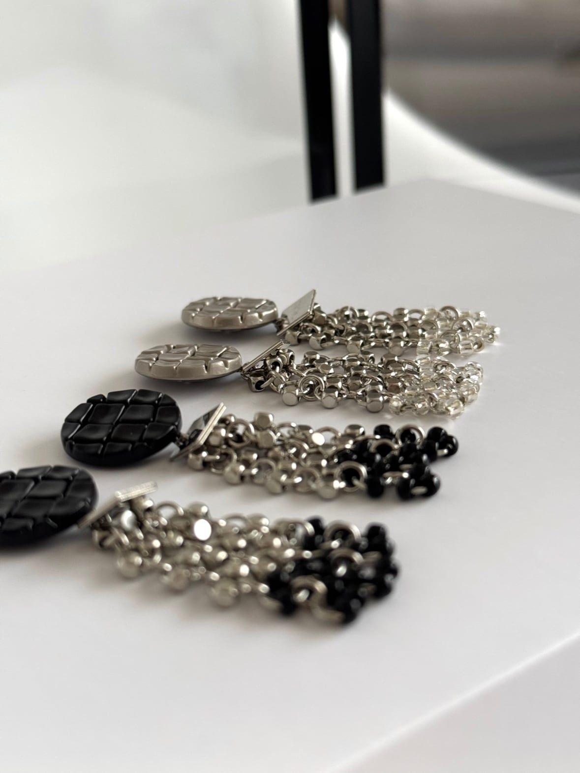 シルバーのボタンにはシルバー×クリアビーズを。