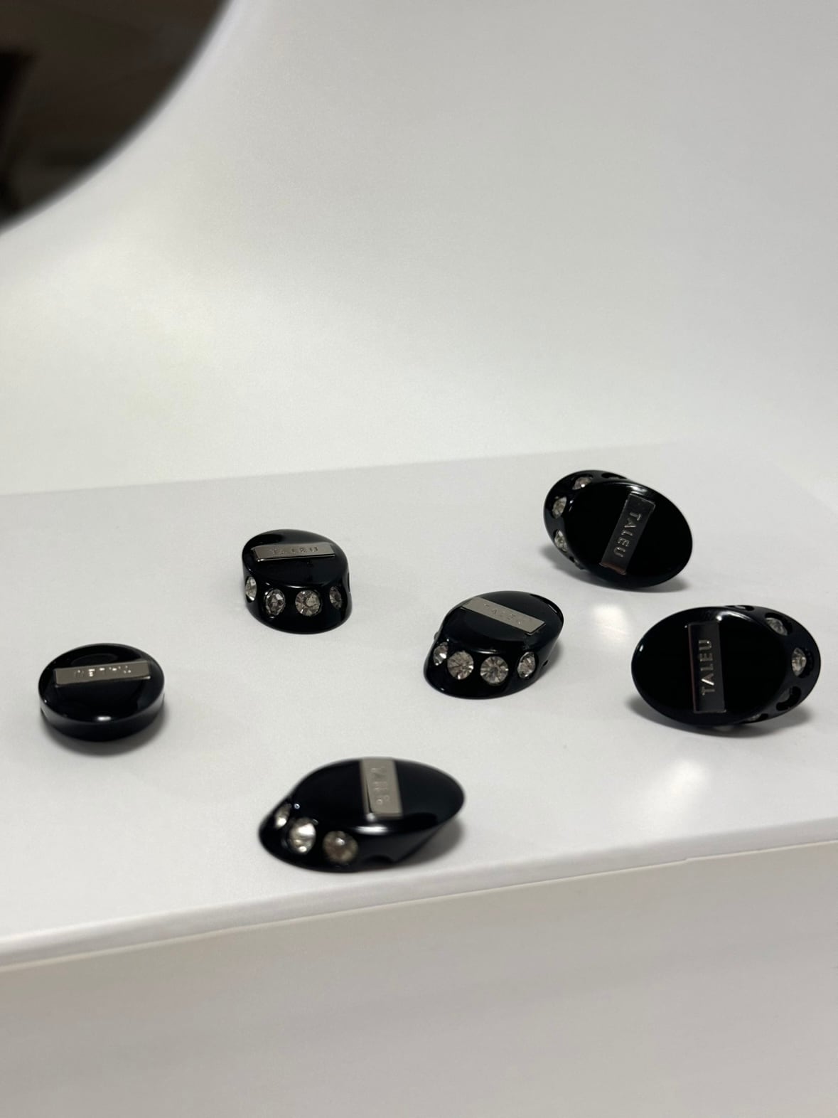 楕円形の形をしたボタンにはクリスタルが埋め込まれており